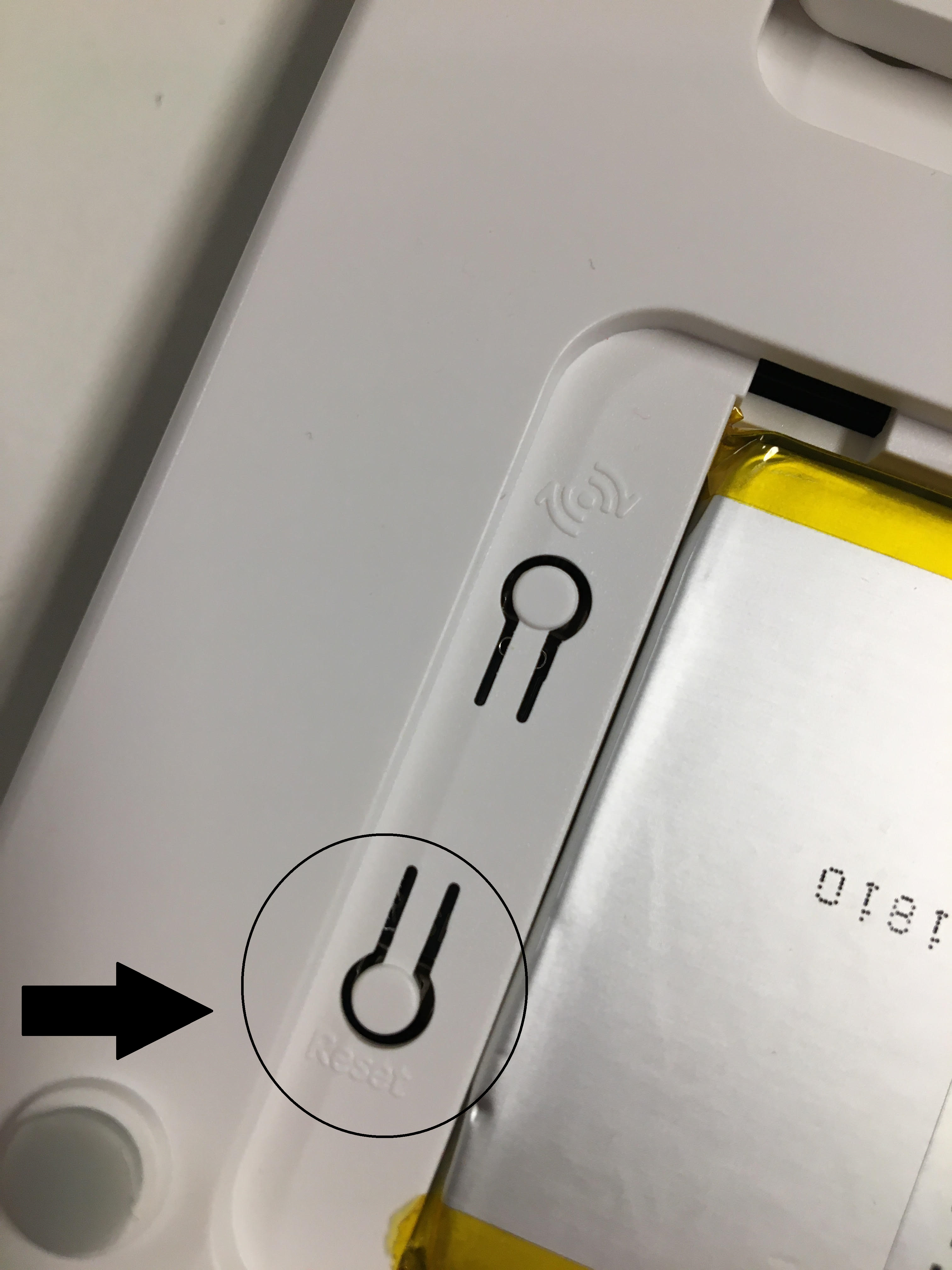 - Den längst ner RESET, som visas på bilden, är återställningsknappen